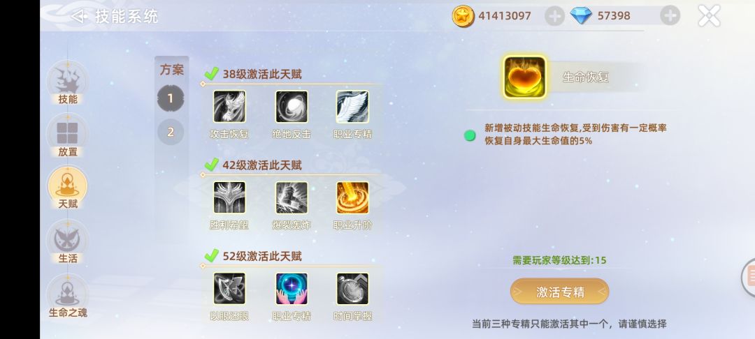 1.随着角色升级,可以激活天赋 15-22-28-32-38-42-52一共7个天赋拦,每个天赋拦可以选择其中一个天赋,这里同学们可以大胆尝试,不需要问人,点错也是可以花5万金币重新洗掉的,不慌, 当等级到35还是38来着可以激活第二套方案,也就是说,你可以pk一套,刷图一套,有心的同学记得留意! 2.放置技能,这个就没有什么可以说的。凭个人喜好喽,唯一要注意的是可以把鞭炮放入快捷栏。这样你抢年兽