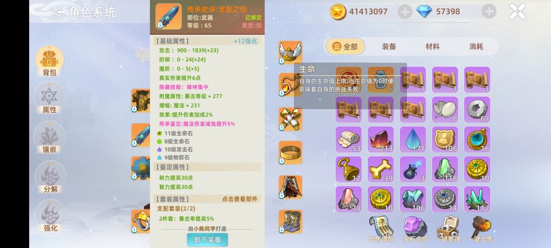 危境分为布甲--轻甲--重甲 跟所有游戏一样,布甲脆,重甲硬 所有角色到达18级转职后都只能佩戴本职业相应的防具属性。 接下去讲些重点 1.装备都有初始3条属性,攻击-防御-魔防,这3条属性是可以通过装备洗练石洗练的,(前期不洗,50级后可以洗,因为50级洗出来是目前这游戏最大数值59好像) 2.装备在洗练过程中,可以洗出隐藏技能和幸运值 这里先讲幸运值,这东西等于其他游戏所说的平衡值,等于你输出