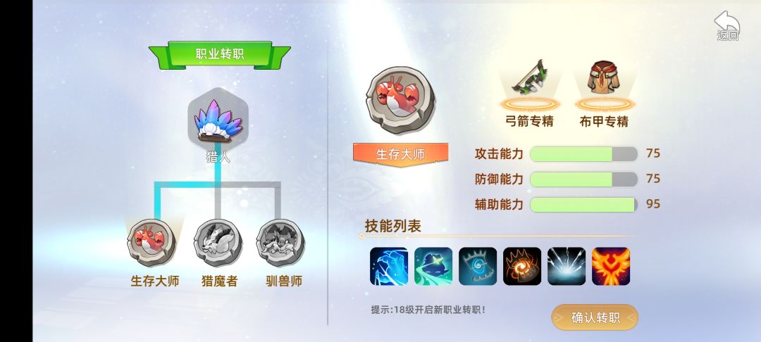 首先先说一下我语文不好,可能有的话说的有点绕凑合看。 猎人这个职业啊,远程攻击,释放技能需要怒气,怒气会根据时间恢复,经过几次更新,目前怒气基本够用,以后不知道。 猎人18级时候可以转职三个职业,本人玩了两个分之职业,朋友玩了一个。 生存大师 从技能来看第一个攻击穿透15%,可以理解为穿甲15% 第二个攻击时10%几率召唤一个蛇棒帮助攻击,这个攻击触发包括,平a释放技能,都可以触发 第三个第四