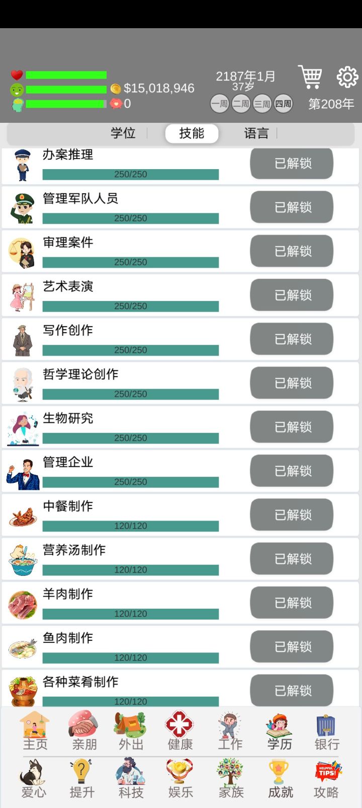 全职业全技能解锁,因为想知道各职业的最高工资,肝了一晚上。