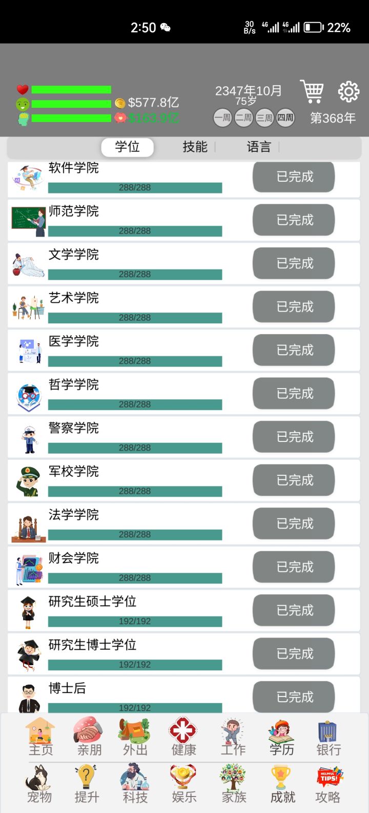 肝了几小时总结一下攻略一、前期(生存)1.看广告拿100生活费。2.看广告拿70万。3.看广告房子6折。4.18岁买房子租出去收支平衡就行了。二、中期(读书)1.去读书读什么专业都行大学本科就好了。2.技能读西餐制作。三、后期(工作)1.服务员干3年,后面创业要用。2.公务员存钱。3.边工作边收房租等遗产,钱够了去创业。四、创业1.越是前面的公司创业的钱,就越少。2.