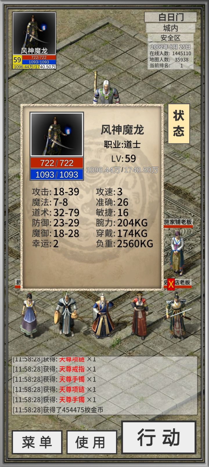 “道士”很难定位,在整场游戏中道士都是围绕在尸王殿朝着白虎培养。*(本人从33级尸王殿升级37级)