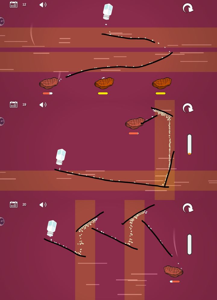 局外处理:过关给金币,金币可以对换牛排皮肤,盐罐子皮肤,盐碰到牛排试冒的烟皮肤(有搞头)