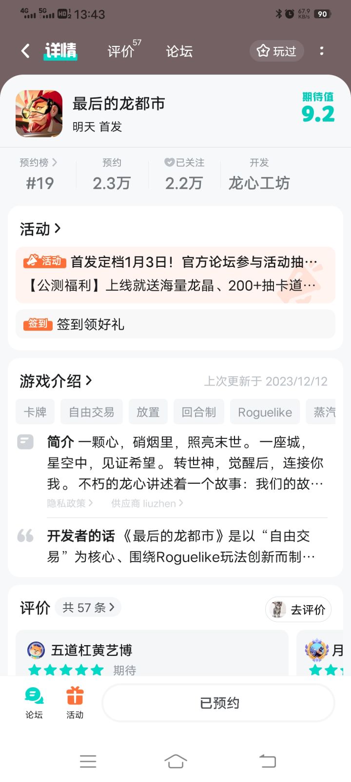 【公测福利】上线就送海量龙晶、200+抽卡道具+强力单卡!更有机会赢取索尼(SONY)PS5光驱版!亲爱的觉醒者们:喜报来袭!《最后的龙都市》终于首发定档啦!!我们将于2024年1月3日上午11点整正式与各位觉醒者见面了!!!作为一款以“自由交易”为核心、结合Roguelike玩法创新而制作的一款休闲卡牌游戏,您会通过召唤获得觉醒者伙伴,然后升级养成,搭配阵容,完成挑战,登上荣耀巅峰等,但在