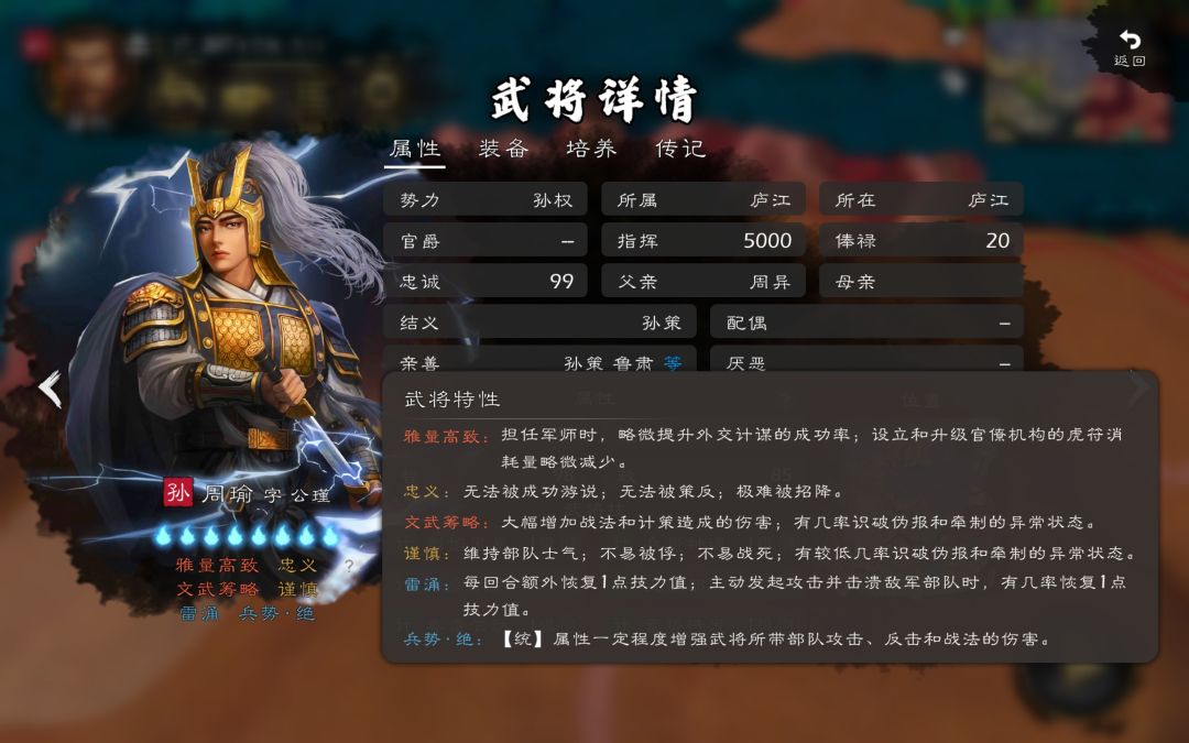 首先,随机界面十二属性应该有所了解,然后才谈得上选择。其中最重要最关键——武力(攻击成长率)、攻击(普攻)、统御(物防成长)、防御(物防)、体力(血量上限成长)、敏捷(速度成长)、速度(出手顺序)共七项;比较重要——智力(精神成长)、精神(法伤)、命中(普攻)、闪避(普攻)、幸运(事件概率)。 其次,职业、特性、五行、初始技能大致看看就好,不好强求完美。 最后,攻击、防御、速度三个初始值直接影响新