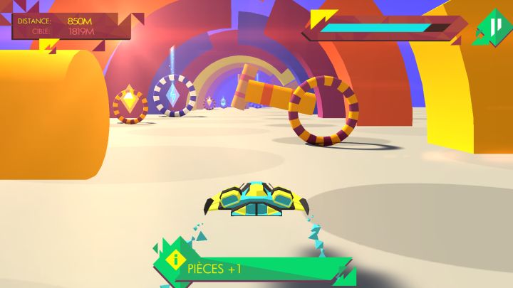 玩过不少的虐心游戏,但却很少像今天这般,不想放弃,还迫切的要通关游戏,这大概就是《几何比赛》(Geometry Race)的魅力吧,一款将魔性与虐心结合的游戏。初看,这是一款刺激的竞速游戏,画面采用了比较少见的波西米亚艺术风格,整体给人一种自由奔放的感觉,而浓烈的色彩则给人强烈的视觉冲击力,再加上动态的视觉效果,游戏的气氛被烘托的异常紧张,尤其是飞船撞到障碍时的分子破碎,简直让玩家心都揪起来了,