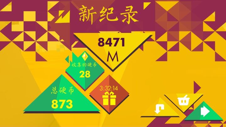 玩过不少的虐心游戏,但却很少像今天这般,不想放弃,还迫切的要通关游戏,这大概就是《几何比赛》(Geometry Race)的魅力吧,一款将魔性与虐心结合的游戏。初看,这是一款刺激的竞速游戏,画面采用了比较少见的波西米亚艺术风格,整体给人一种自由奔放的感觉,而浓烈的色彩则给人强烈的视觉冲击力,再加上动态的视觉效果,游戏的气氛被烘托的异常紧张,尤其是飞船撞到障碍时的分子破碎,简直让玩家心都揪起来了,