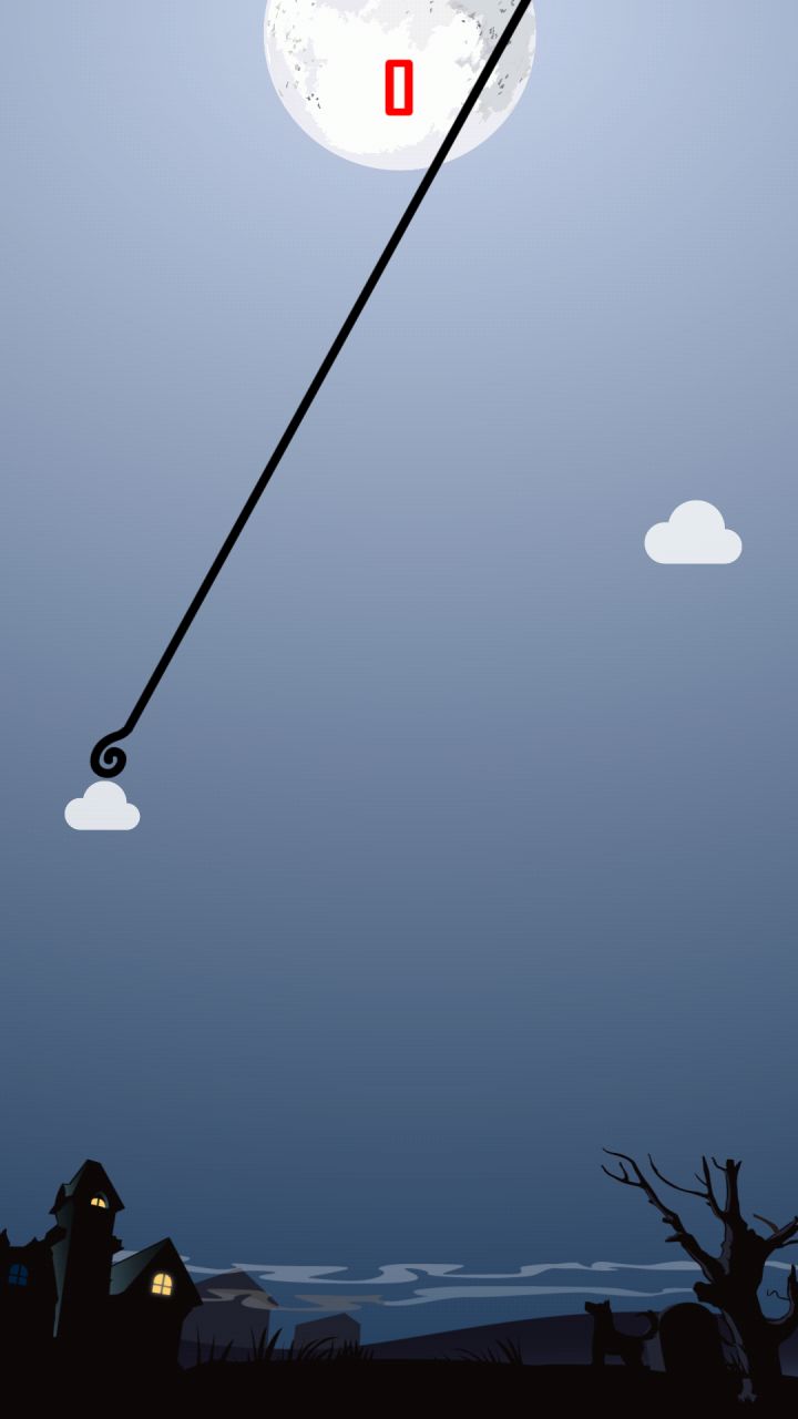 玩的第十次……我终于弄懂了玩法23333就是点两次屏幕然后估计以尾巴尖为圆心尾巴长为半径能够够到云彩的时候松手就ok啦