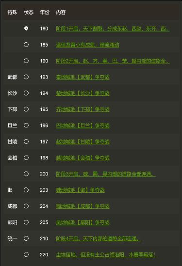 老规矩,例行提醒。赛季重启,只保留成就,所有新老玩家同一起跑线。 新赛制,按阶段开发区域,让各势力都有驻足的发展机会,进而在210年竞争帝位。为了更显公平,强制每个设备每个网络每天只能登录1个帐号。本区预计将于2023-10-29 21:00重启 根据部分朋友的反馈,原210年全部解锁区域,提前至206年全部解锁区域。