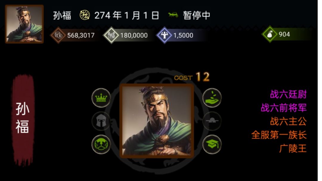 建议配合此贴观看 —————————三国士族纪念贴———————— 逍遥数十载,一朝入巅峰。 一己之力打通三国士族。 今日,便公布吾之成绩,让汝见证玩家之巅峰。 首先,一己之力推平数百座城池,使得剩余城池尽归于绿,同时,势力的势力值也到达新的高度,超越百万。 第二,实现了势力值的遥遥领先,势力值达16万之高,前所未有,同时治理值也达到了第一。 第三,达到了统兵数的巅峰,屯十万精兵。 第四,在单血脉