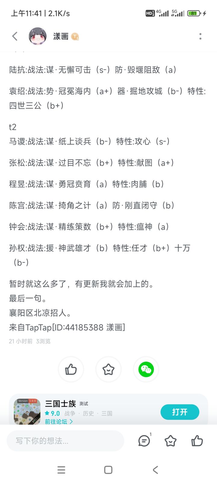 原来你也玩三国士族!⌓‿⌓
