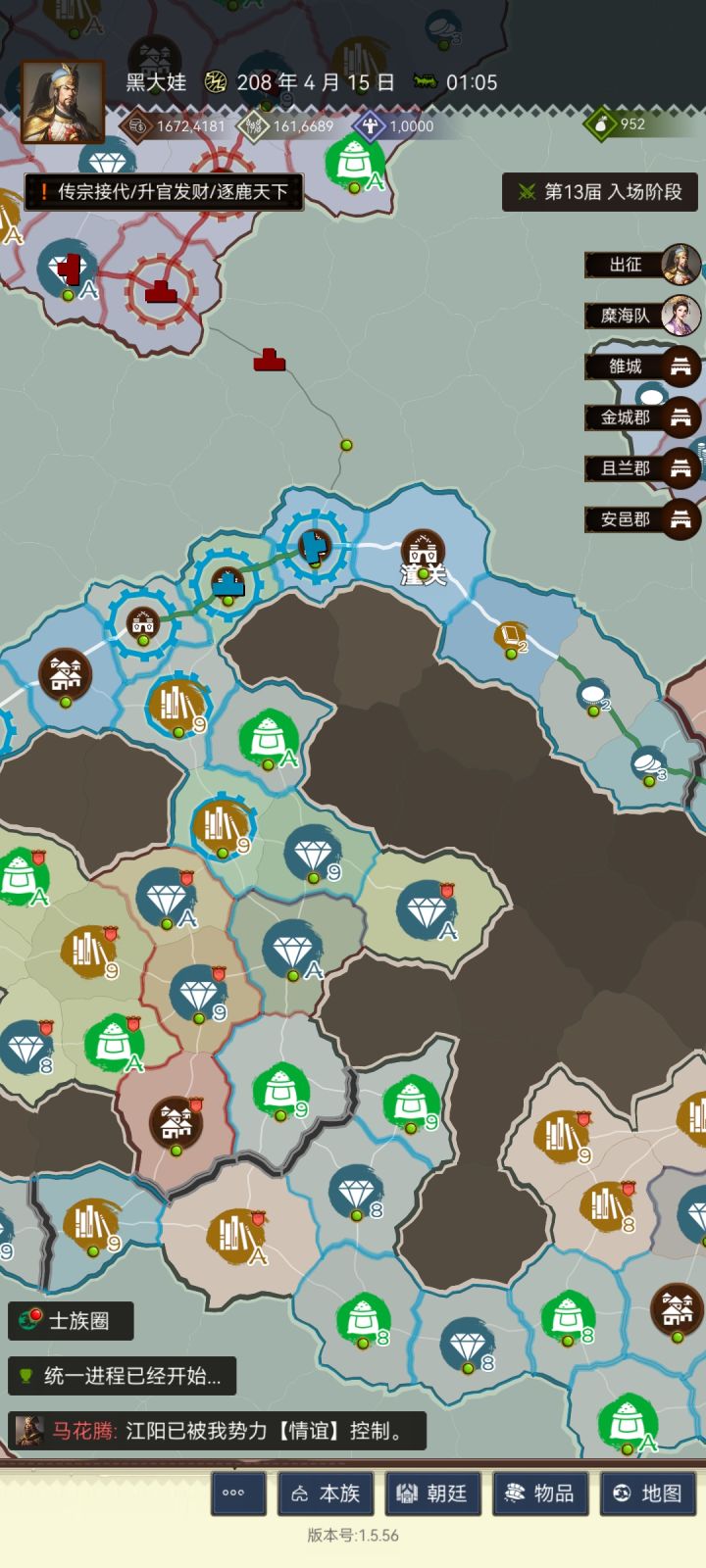 老规矩,作为指挥官,开始对整场战斗进行战略战术复盘。看下双方在关键节点是如何抉择的,主要胜负手在哪。180年,我看到高顺在魏国,想着这测再抓个高顺玩玩。落地之后,随意发展,加入本土势力。然后就发现居然有很多认识的朋友,考虑了一下,决定放弃高顺,好好玩一测。180-195年发展不表,从地图变化来看,蜀国由多个势力组成,错综复杂。195年,开始建立北平指挥部,同时外交联络情谊,情谊内部较为散乱,