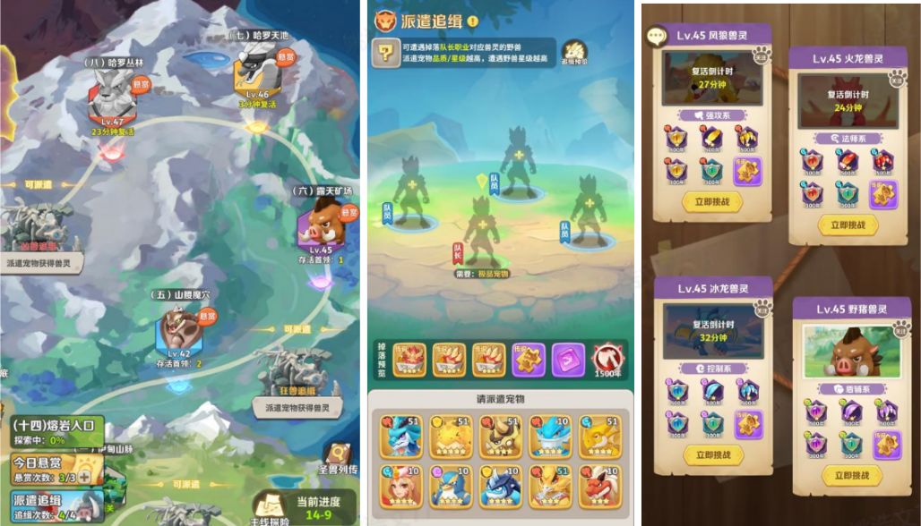 兽灵是玩家进入游戏前期就会接触到的重要养成系统,其重要性与龙骨不相上下,不仅能够提供大量的数值加成,还有非常重要的套装效果,在战斗中起到非常关键的作用! 【兽灵如何获取】 派遣追击:兽灵最为主要的获取途径,在玩家进服第四天后解锁,每日五点刷新次数;玩家每日可进入世界地图搜索追缉目标,并派遣宠物进行追缉,可掉落队长对应职业的兽灵材料,派遣宠物的品质/星级越高,则可能遇到的凶兽星级越高,产出的奖励也越