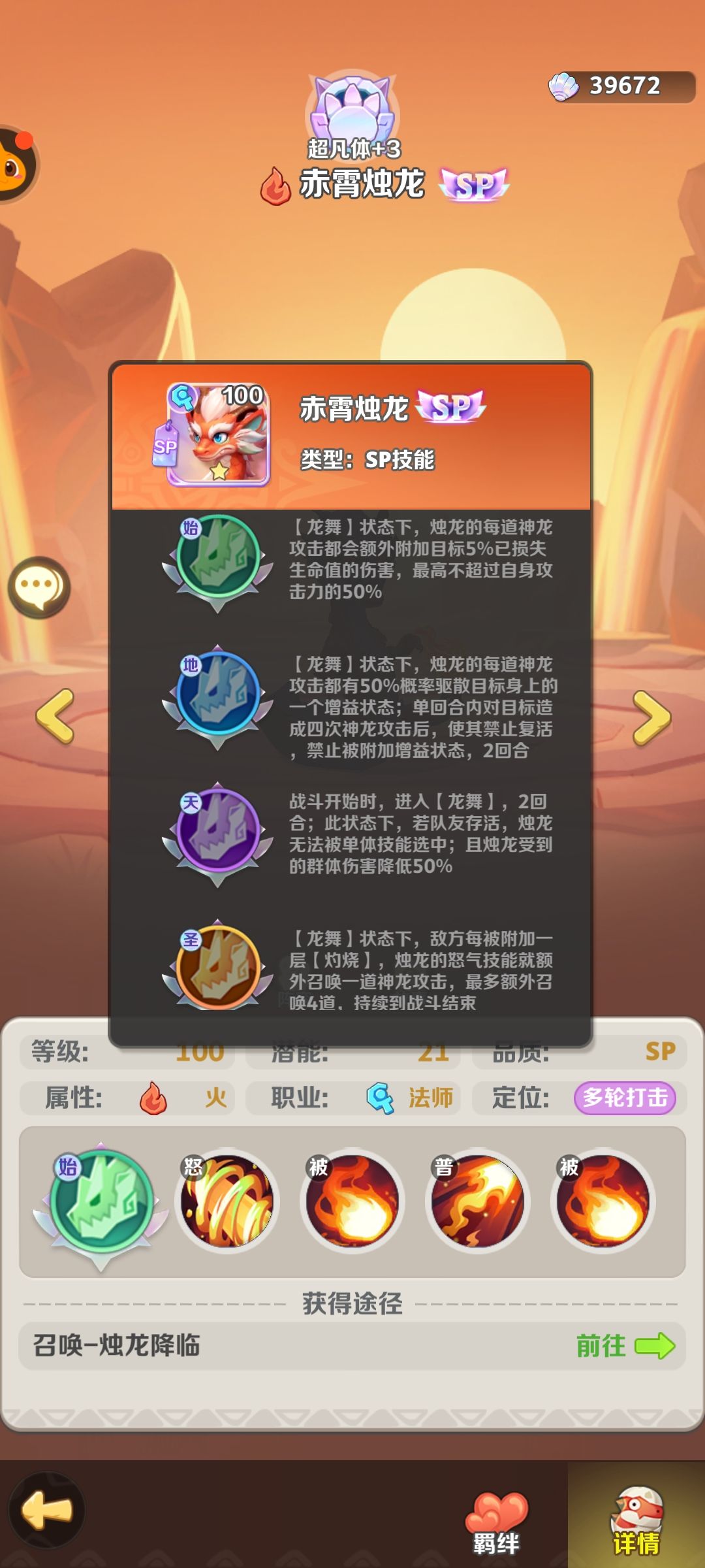 初始sp火蛇就可以技能附带目标已损失血量的额外伤害。 地阶可以驱散增益加禁活,有一定的团队辅助能力 天阶可以给自身提升一定生存能力 圣阶和神阶都是大幅提升自身输出 单从技能来看,始阶就可以用,如果条件允许,可以抽到圣阶。如果只是火队暴龙主c也可以抽到地阶给暴龙打辅助,驱散对手增益和禁止枯藤复活的效果。 阵容推荐:醉龙,蝎子,火牛,sp猩猩,sp火龙,无敌龙 醉龙,蝎子,火牛,sp火龙,无敌龙,暴龙