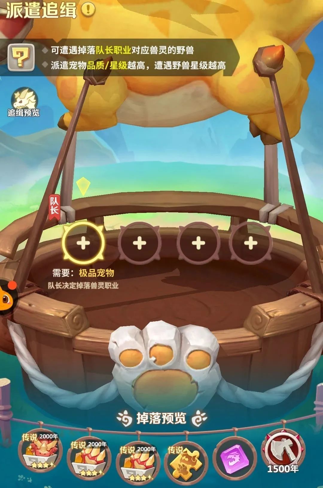 接下来让艾恩来预告一下!勇士们在原始冒险前期会接触到的重要养成系统——兽灵! 01基础介绍●开启条件:开服第4天 ●简单介绍:重要性与龙骨不相上下,不仅能够提供大量的数值加成,还有非常重要的套装效果,在战斗中起到非常关键的作用! 二、获取方式 ●派遣追击:兽灵的主要获取途径。勇士可每日可进入世界地图搜索追缉目标,并派遣宠物进行追缉; ●今日悬赏:可以产出高品质兽灵的限时玩法,击败悬赏BOSS获取兽