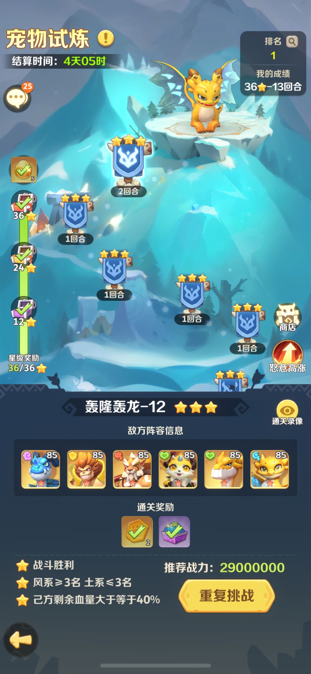 【轰隆轰龙宠物试炼】12/13回合闯关解密: