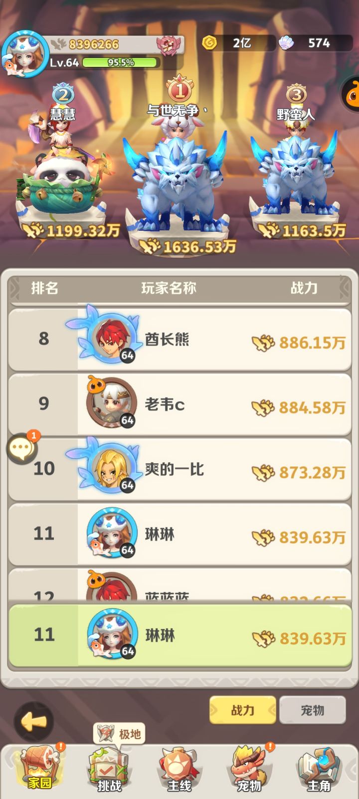 有没有想要接盘的,肝不下去了,也氪不下去了。氪了2000+还有580个蛋,风系基本成型,第一部落长老,排行榜11