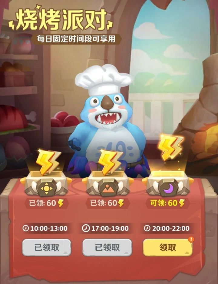 勇士们好呀~距离穿越隧道开启的时间越来越近,艾恩与菜叽也愈发兴奋起来了!这不,今天菜叽就要强势发言:作为伊甸大陆上的最强福利叽,今天就要给大家展示展示——福利多多的原始冒险!每日三个时间段,大厨草裙海獭为大家带来烧烤派对~享用后即可回复60点体力哦!元气满满起来了!部落狩猎大丰收!大家一起来瓜分丰富奖励咯!每日都能够寻宝探险哦,达到一定层数道场还能够升级奖励呢!还等什么,快和艾恩菜叽一起出发