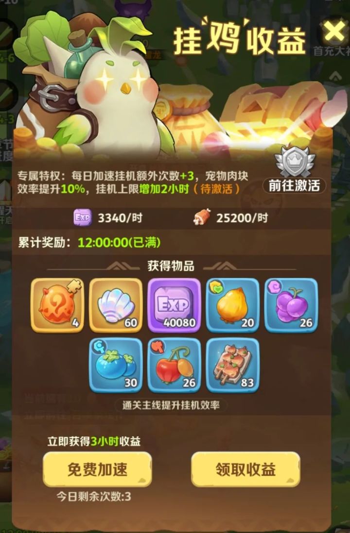 勇士们好呀~艾恩和菜叽来咯!今天距离咱们的原始征程开启还有8天!想要问一下各位平时喜欢怎样的活动呢?艾恩听说喜爱养生的现代人有很多!这不巧了嘛~咱们伊甸大陆的居民宠物们,对护肝和养生也有自己的一套独特见解哦~福利菜叽并非浪得虚名,勇士们在或不在,菜叽都会努力得搜集奖励哦!您的挂"鸡"收益已到账,请及时领取吼~害怕一步跟不上、步步跟不上?在这里,不存在的!玩法资源,轻松找回!可以使用彩贝或金币都