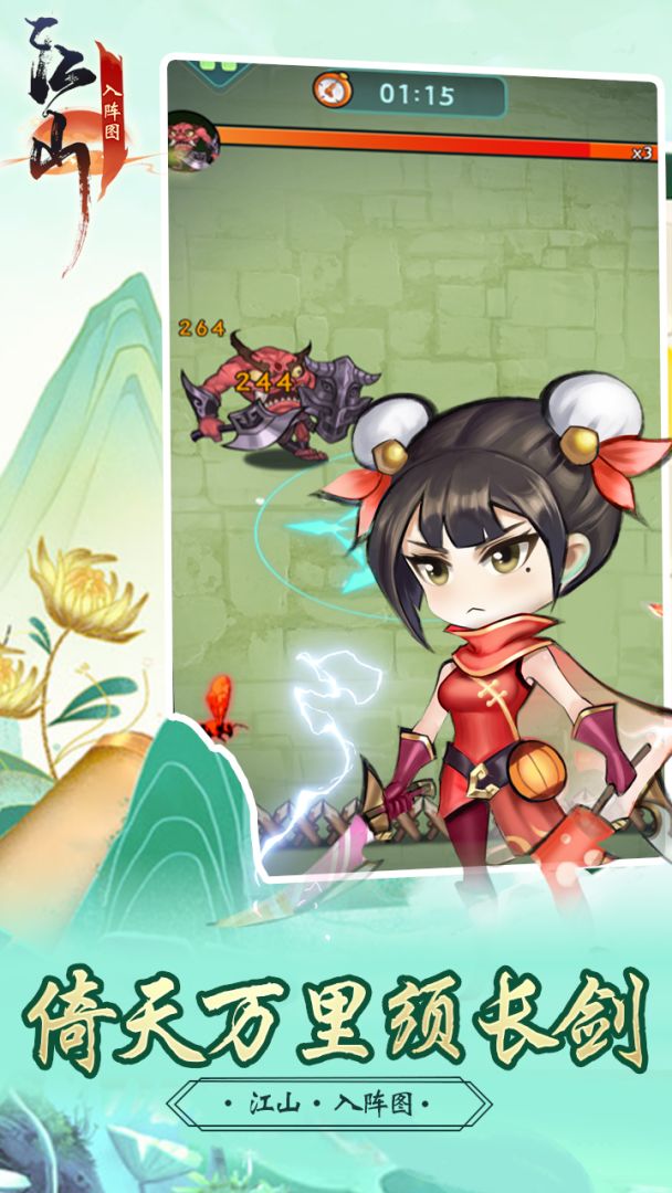 隐私政策 开发者的话游戏特色 【快节奏肉鸽 只属于你的武林奇遇】 作为武林侠客,你要不停地对抗如潮水般袭来的怪兽妖魔。 单局5分钟左右,用碎片化的时间带你领略爽快的战斗。 【技能随心组 集众家所长强化自身】 在《江山入阵图》中,你将自由组合十余种创新技能,集百家之长解除怪物陷阱,通过无尽试炼,对抗二十余种妖魔异兽;加入水火帮派之争,为自己的帮派夺取一席之地,打造独一无二的武侠之旅。 【中国风美术 清隽悠远的如画江山】 清新明快的国风美术,七个性格迥异的可选角色,多种取材于古籍小说的鬼灵精怪,再造一个奇幻武林。 【十余种异兽 降妖除魔巅峰战刑天】 在前去挑战刑天的路上,你将会遇到20余种长相风格各异、技能实力不同的异兽,击败他们,提升自己的实力,只有这样才能让你在即将到来的刑天之战中立于不败之地。 关注我们 游戏主页:网页链接 玩家交流群:696751929
