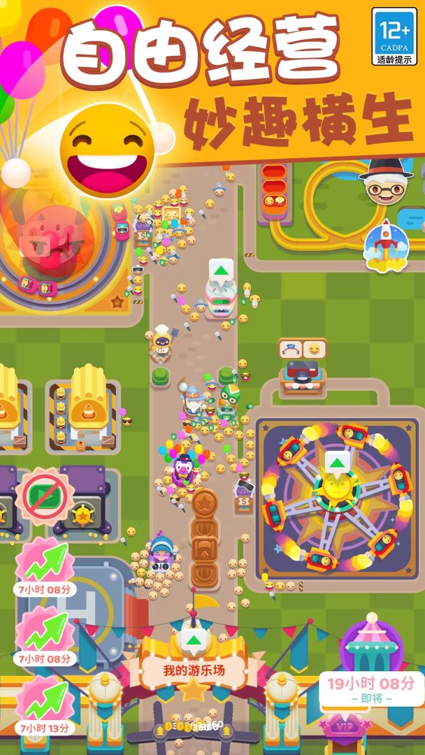 欢乐游戏城是一款模拟经营游乐园游戏,在游戏中你将成为一个游乐场管理员,可以按照自己的想法建造各种各样的游乐设备,打造出独一无二的游乐园,吸引越来越多的游客来到你的游乐场游玩。