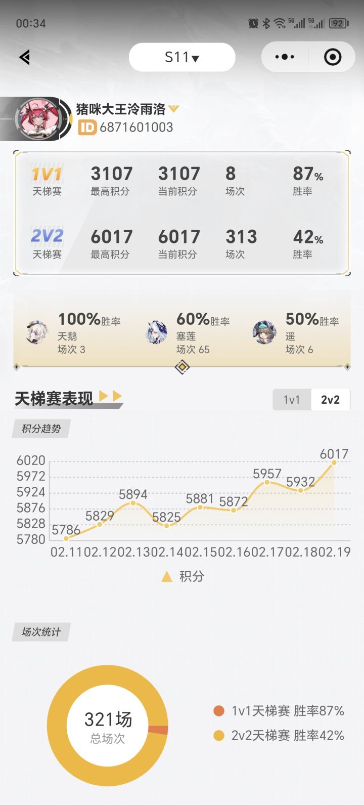 传说传说中的牢9门?!萌新萌新发问,我正经用罗兰打排位呢,虽然总想问“为什么接不上?!”也正经在排位练魔女冲击,后面还打算把资源集中在抽这个的五命,因为喜欢。喵的喵的,匹配一堆妖魔鬼怪,还没排位简单目目前在4000分,感觉应该不会止步于此,但也确实感觉玩起来需要集中精神,吃力了,可惜在读生口抽不出足够时间啊。