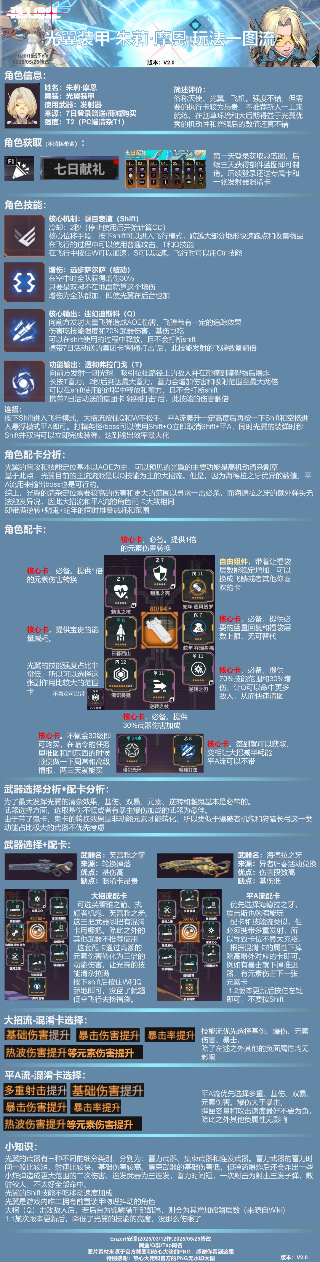注释 首先,将列出A、B、C三个级别。 大级别的划分,主要考虑在日常刷图中有稳定的就业位置(功能性),同时考虑强度、数值的高低。 有+号一列为更侧重就业,更推荐培养的角色 无+号一列为更侧重强度,参考个人喜好培养的角色 全角色简评: 后面我会更新各个角色的详细攻略~ 包括配卡、思路等,因此此部分仅简评。 A+: 1.光翼——目前版本稳定就业:叠楼速刷核桃、厂区速刷钱、活动图、烽燧纪念碑。 跟上版本