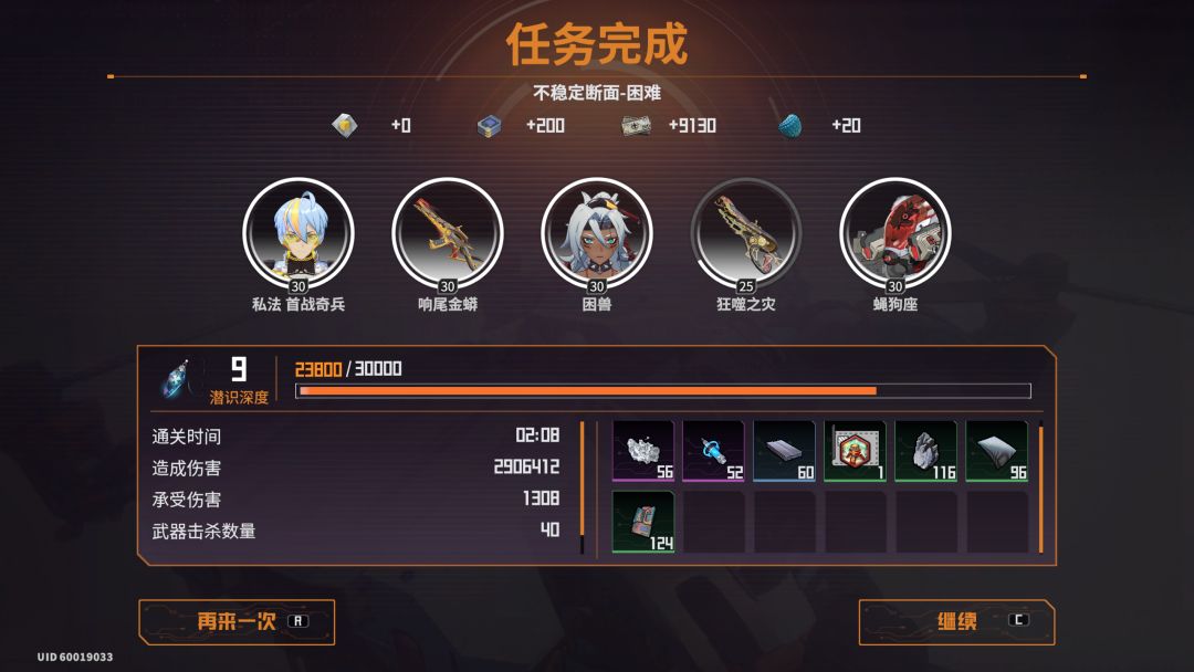 这是男主的搭配,武器没有可以选个差不多触发和暴击爆伤的。其他的芯片刷图就能掉。。。 这个的好处就是不需要话费金币买其他角色和武器,只要前期刷些芯片就行。 我最快速度是2分23秒一次。平均是2分30秒的样子