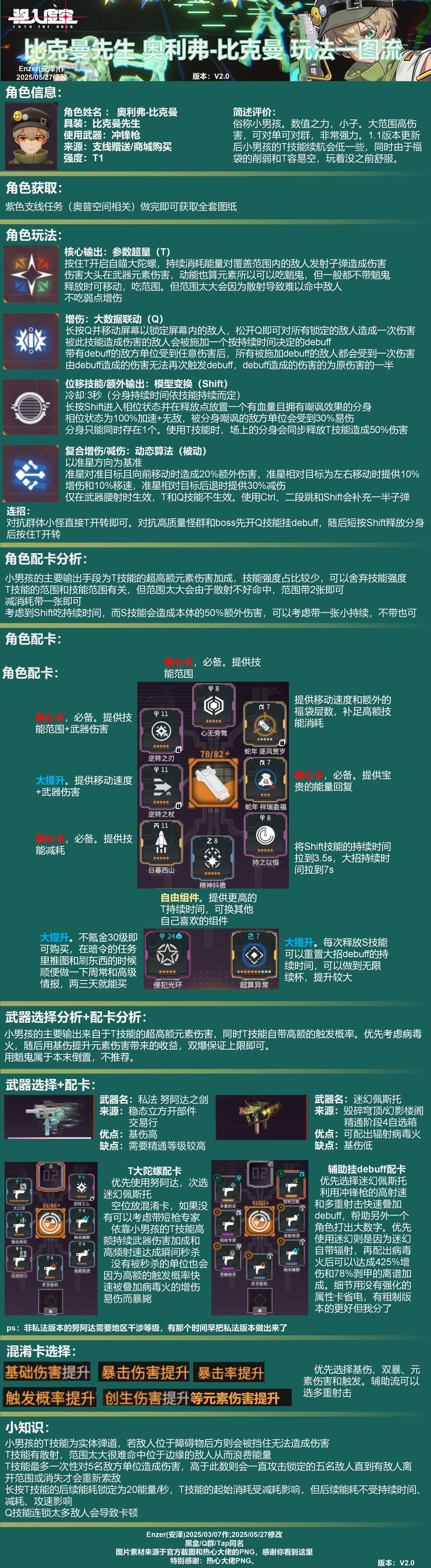 05/27改动:大更新,修改了格式,让萌新能更一目了然的知晓角色玩法和配卡。剩下的角色基本是强度比较低或者下版本要改的。 4/19修改:1.1版本没有弱点增伤,吃魈鬼,已经改正,向各位被误导的朋友们道个歉:对不起[表情_泪目] 4/03修改:新增精神抖擞作为角色推荐使用的卡牌。 3/21更改:修改了部分词缀 zsbd,久等了各位,这是答应各位的小男孩的一图流攻略,测试小男孩的性能和部分小知识花了不