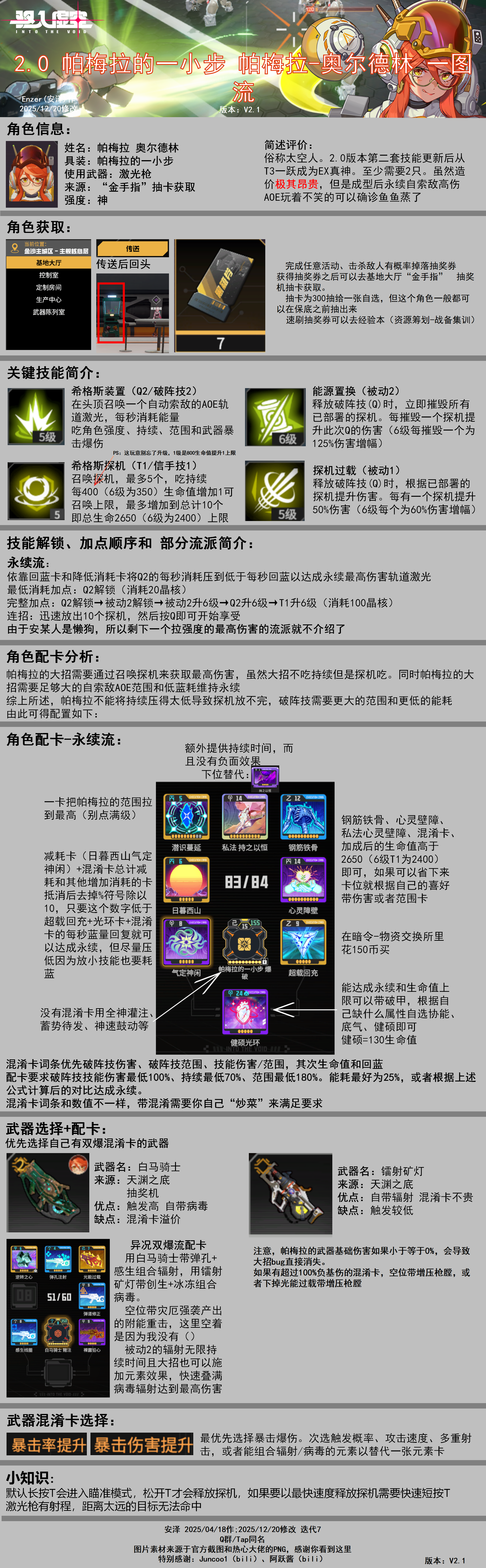 2025/12/20初始版本:zsbd,总之趁着休息先把强度榜排行前边的俩角色先做了,新技能给我玩笑了。帕梅拉的这被动1250%技能伤害加成简直是脚填的数值,再加上永续大招简直离谱。推荐狠狠刷抽奖券去抽她#驱入虚空 #驱入虚空攻略 #驱入虚空角色攻略