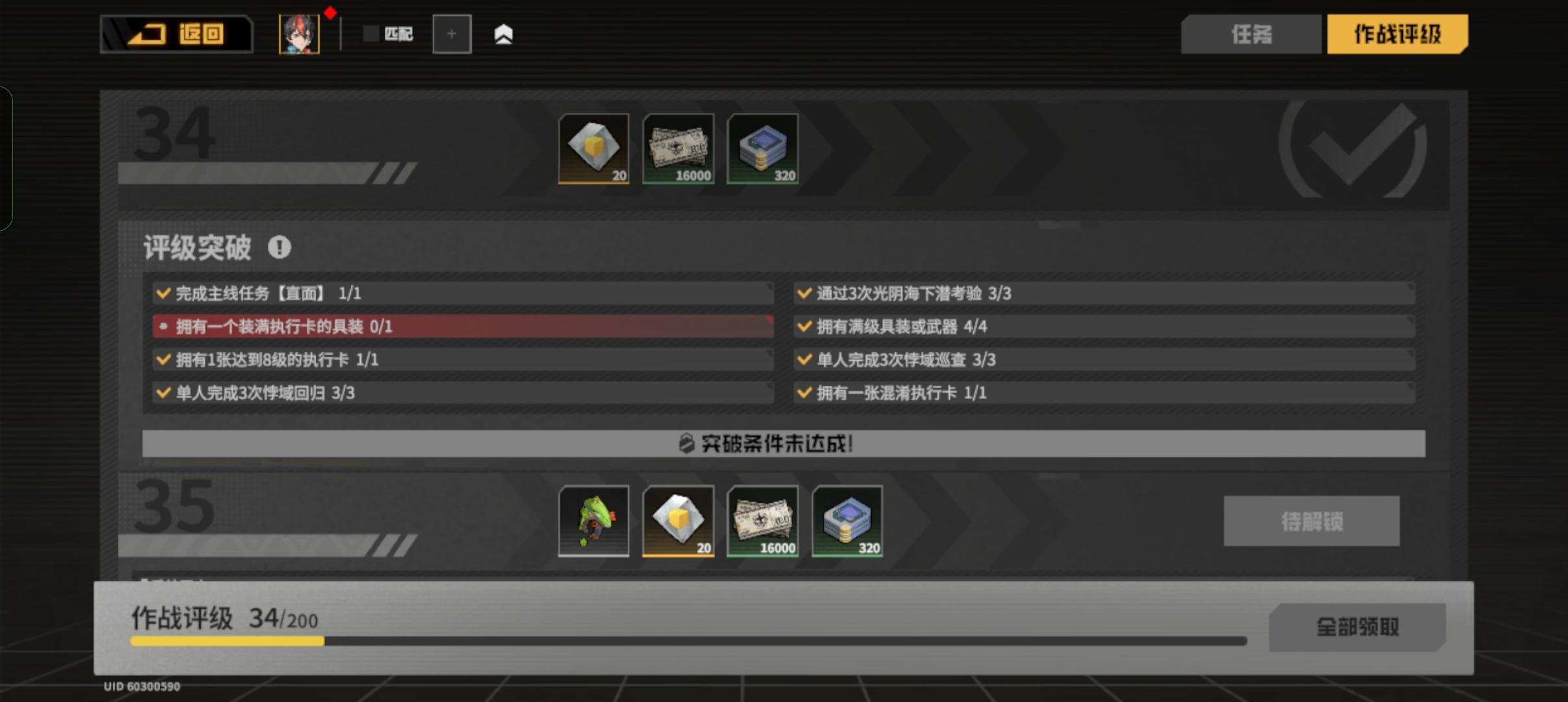 宠物吸引火力+一次复活,16分钟做完悖论回归第三阶段,再把具装执行卡刷出来就能完成35级评级突破了