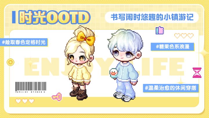绚丽晚春,晴山牧野,接收一份活泼的休闲穿搭灵感~高扎蝴蝶结发圈尽显随性气质,郊游小鸭抱偶入怀,轻松驾驭甜酷时尚欢迎各位居民秀出你的闲趣穿搭,简单松弛,慢享休闲小镇生活~大家可以记录图中每件单品的获取方式哦!欢迎大家前往游戏详情页或加入【玩家交流群:854322561】了解更多游戏最新动态~