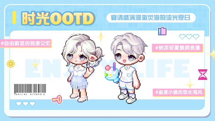 七月至,捕捉初夏的第一缕清风,在花团锦簇的小镇邂逅一段难忘的暑意时光~夏日第一碗沙冰入喉,灵动的浮游海洋之心项链装点……欢迎各位居民秀出你的夏日穿搭,清凉而不失浪漫气质,迎接缤纷奇趣的柔情盛宴!大家可以记录图中每件单品的获取方式哦!欢迎大家前往游戏详情页或加入【玩家交流群:854322561】了解更多游戏最新动态~
