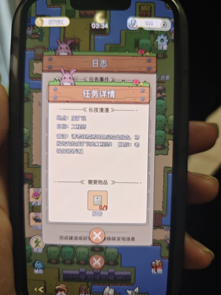 终于肝完了!每个任务的道具都是有用的,一环套一环,这是它的特色。但任务跨度太大了 开始给的任务可能要在很后面才做完,支线太多太杂,总要来回翻日志。后期需要的材料特别多,矿石 木材 兽皮 布料和一些其它的,大部分时间都在囤材料,看广告,准备半天材料才完成一个任务(适合比较有耐心的人玩)。卡住了就翻翻论坛,大部分都有。通关了还是有一点成就感的哈哈哈啊 在这里留个小纪念!