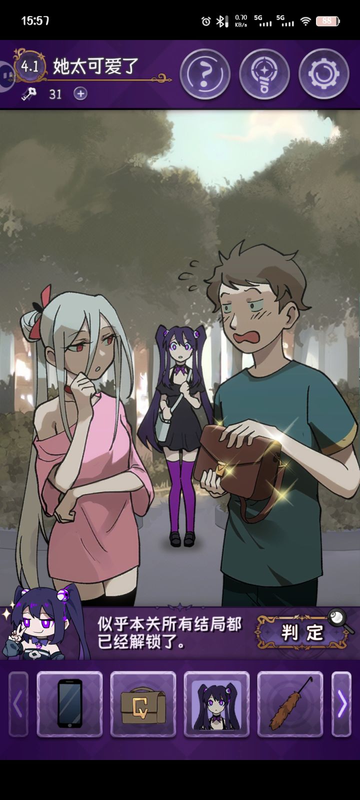 我个人特别喜欢这种玩法,游戏普通难度不能说简单,但确实完全可以做出来的。对我来说难度刚好。玩法说起来很简单,就是点击收集物品然后将物品合成,合成方面有提示,上手很快,玩法简单但难度系数不低,每一集都像个小故事,让你拼凑结局,结局有三个,其中两个算彩蛋。