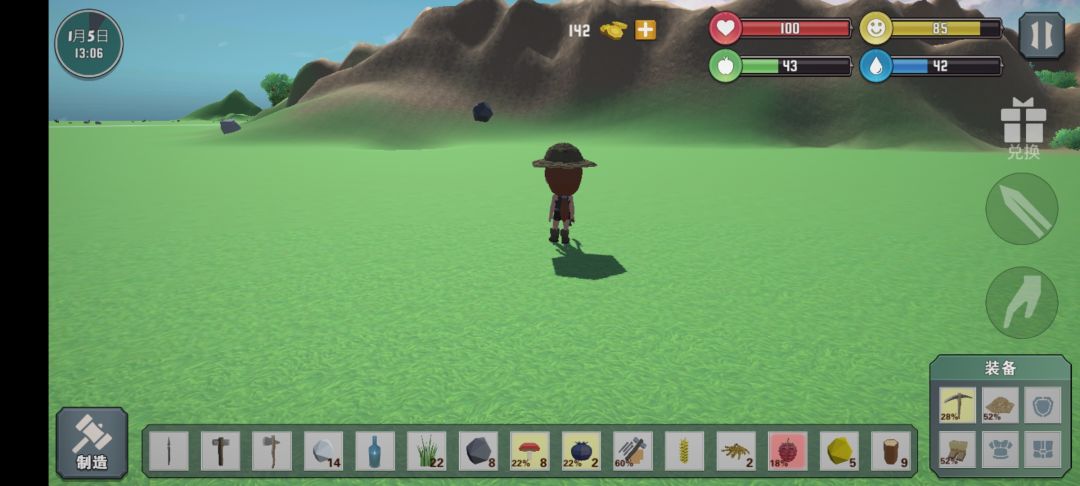 重来好几次的一些总结: 1.先做衣服,建议打鹿得到兽皮(鹿用矛,弹弓和箭暂时还不会用) 2.走远一点的地方建议做个瓶子带些水(印象中有两个湖和一条河,但是我的小人喝不了河里的水,不知道是我手机的问题还是游戏设置,没水就会被渴死) 3.地图里能捡到金币,但是不要乱花,商人那里的东西大多数都能捡,不需要买(地图里至少能捡到140个金币,有些区域我还没有探索,不知道有没有。) 4.储物栏的位置比较少,开