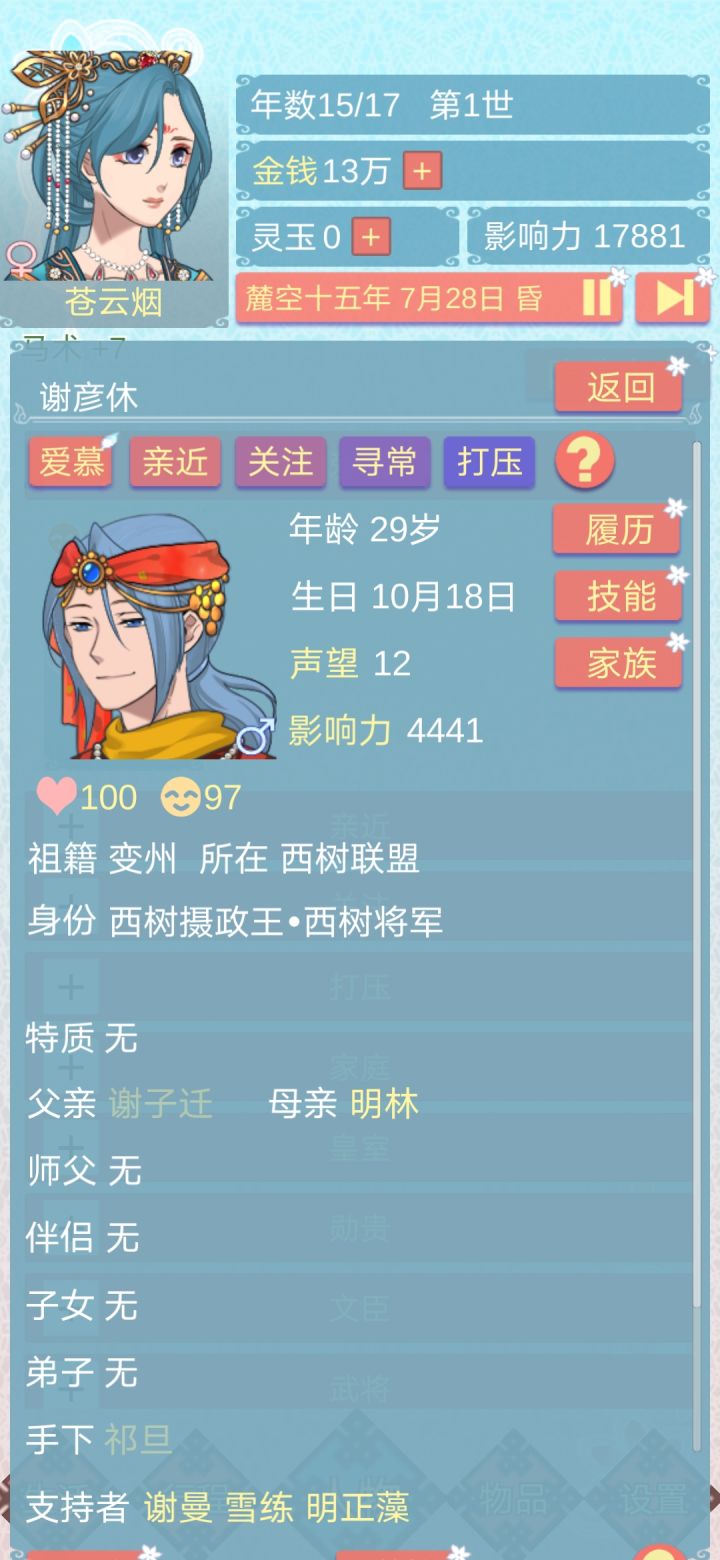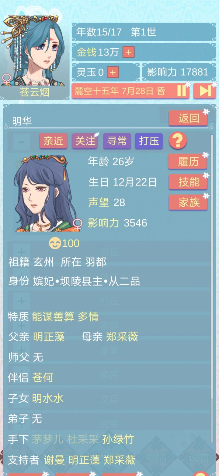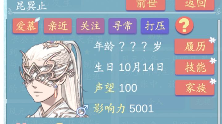 第二世把神医儿子谈了没有这剧情。第三世不介入神医儿子感情线,他就会跟仆人充萋萋相爱,但是家里人不同意,地位差距有点大,接着两人就会私奔改名流浪,后面被找到时也不愿意回去。然鹅我万万没想到他老婆死了以后他带着他女儿来投奔长公主混口饭吃的话术是做面首…不是,这对吗这,接受以后他六岁大的女儿就会去一个官家小姐那儿当仆人,我还以为这个小女孩儿要养在公主府上