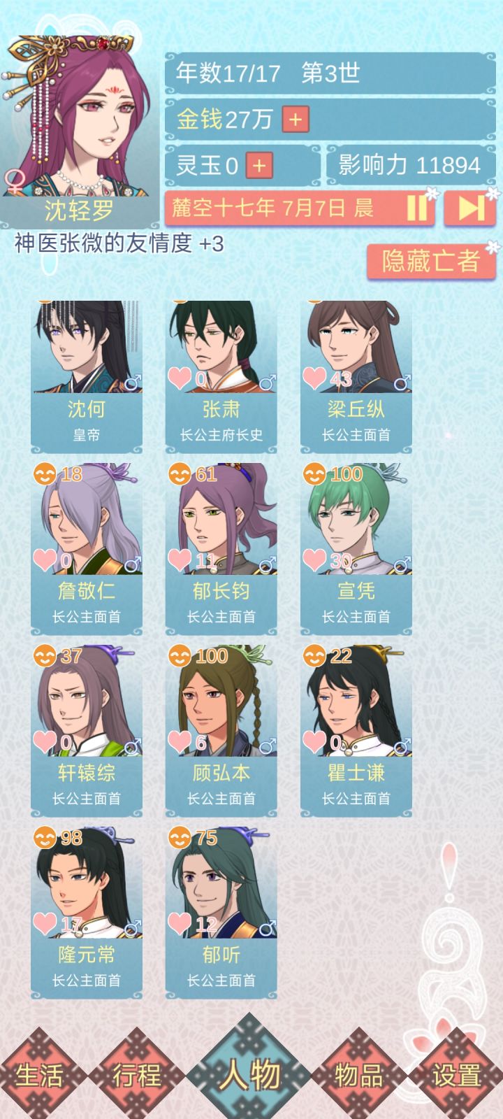 第二世把神医儿子谈了没有这剧情。第三世不介入神医儿子感情线,他就会跟仆人充萋萋相爱,但是家里人不同意,地位差距有点大,接着两人就会私奔改名流浪,后面被找到时也不愿意回去。然鹅我万万没想到他老婆死了以后他带着他女儿来投奔长公主混口饭吃的话术是做面首…不是,这对吗这,接受以后他六岁大的女儿就会去一个官家小姐那儿当仆人,我还以为这个小女孩儿要养在公主府上