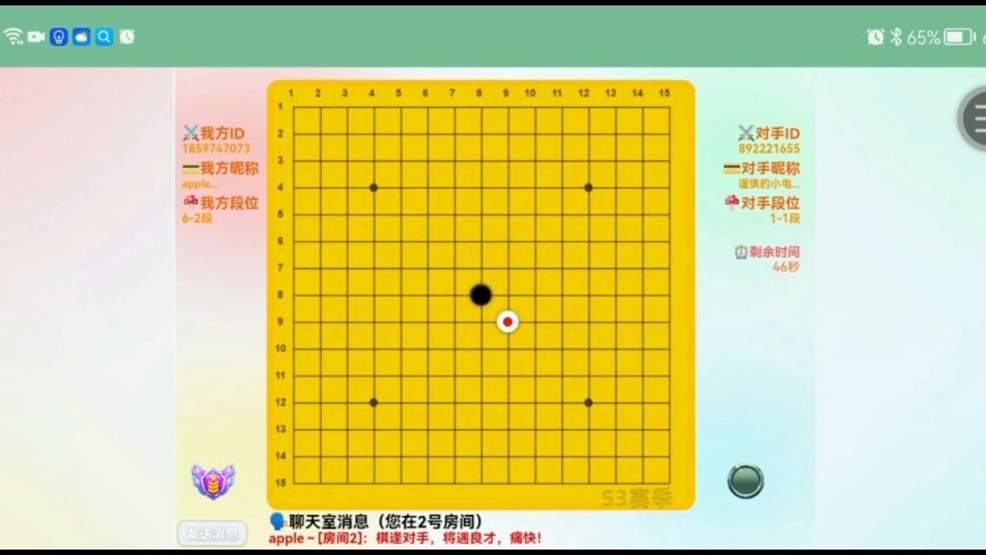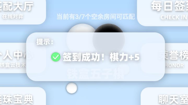 铁盒五子棋的优点1.可联机下棋,与游戏内玩家切磋棋艺2.内置连珠宝典,新手下棋建议先看完3.内置聊天区,时时与全服玩家交流,还能广播通报4.正在博弈的对局可以进行观战,有时候大佬切磋,大家可以进行观战来提升自己对五子棋的理解5.赛季系统,和全服玩家共同竞争下一个大佬或许就是你铁盒五子棋的缺点1.房间只有7个,人多了就会抢不到房间2.下棋时可能会出现bug,例如连3子或者4子就判定胜