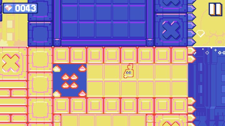 毫无疑问这是一款致敬经典的游戏。像素画风和类似于超级马里奥的闯关型经典玩法,配合主色调黄金黄和炫光紫,横版跳跃、收集钻石、关卡存档,简单复古却有魔力般停不下来。在致敬经典的同时,游戏还有自己的新创意。上划或者下划就可以颠倒主角小人状态:正常和倒立。颠倒后的世界,都是逆向的,尽管在操作上并无二样,但由于打破了惯性视觉,就好像换左手写字一样,加大了操作的难度和趣味。后期的障碍设置会愈加复杂,越到后面
