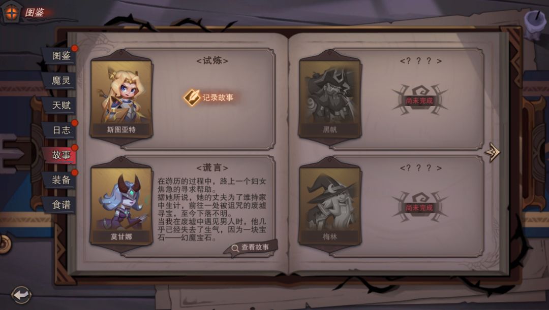 点击故事回放可以回顾与NPC的点点滴滴! 近期优化内容: 优化设置按钮框过小难以点击 优化聊天界面排序 优化助战魔灵释放技能时不会触发陷阱(出战魔灵仍然会触发) 优化战斗体验 修复挑战关卡崩塌卡住 修复战斗中部分天赋特殊情况不触发 修复使用奥义后战斗卡死 修复在部分情况下打不到怪