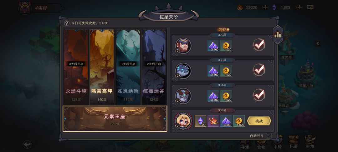 全知之书,服务器ID;1001 角色;木海海 ID;4533 1、推图第一 辉石买体力,前面2次很便宜,肝时空镜洞的时候需要 只管推图,推图过程中各种宝箱、没触发没关系,它有上下图联动机制,在后面的图中才可以获得前面所需的关键道具。 可以搜一下攻略,看一下每一关的金色漩涡在哪里,中间需要的关键道具在哪里,会推的快一点 2、装备选择 高品质的装备是多是时空镜洞产出的,尽量选择那些强化后效果非常明显的