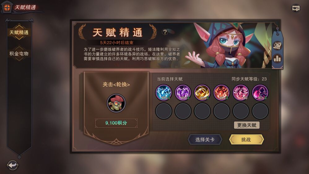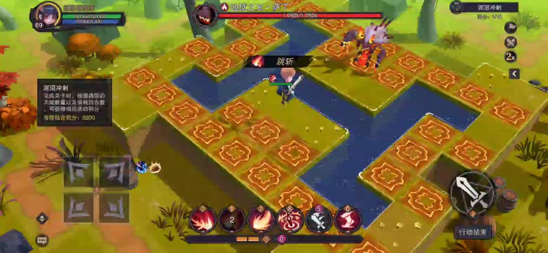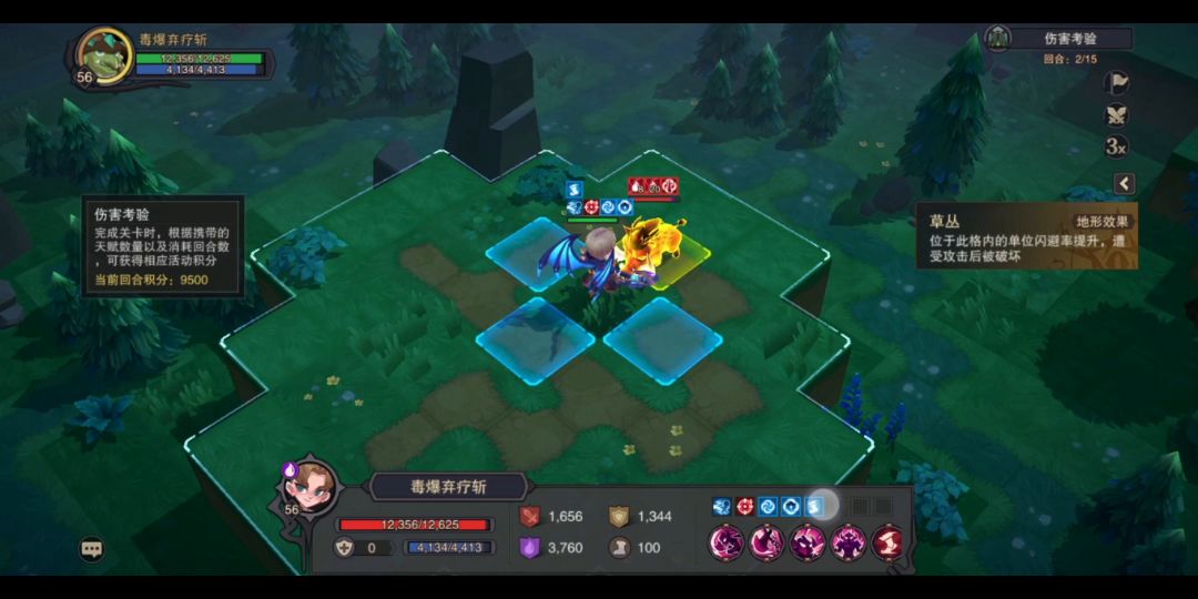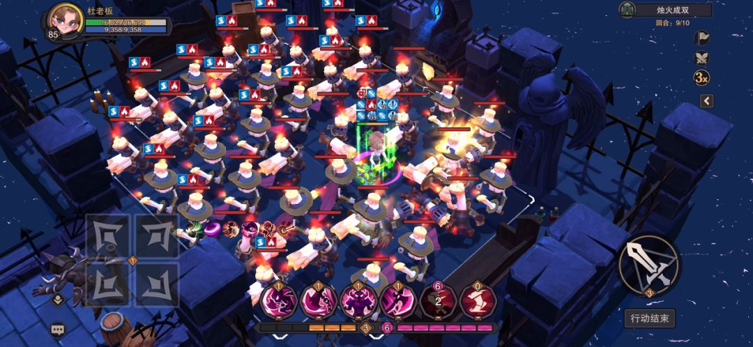晚上群里看群友说这关能刷成就,趁现在重斩还没削,先试试。11关的挑战2烛火成双。 4先锋+2奥法,然后带个回蓝,至少99下重斩,别砍着砍着没蓝了,武器带燎原,大招伤害爆炸,然后就要注意的是结算完才算解锁成就,前面7回合一直溜,然后第8回合开始刷,第9回合一定要走位到角落,因为我没盾噬,所以到角落能少挨几下,保证通关成功。