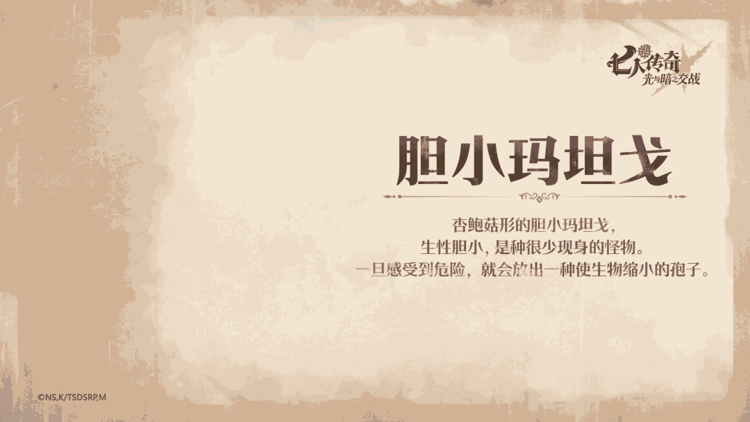☛杏鲍菇形的胆小玛坦戈,生性胆小,是种很少现身的怪物。一旦感受到危险,就会放出一种使生物缩小的孢子。☛ TapTap专区预约:#七人传奇光与暗之交战#七人传奇手游#七人传奇