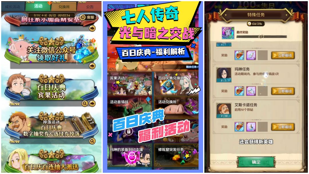 ~庆贺正式上线百日!~ 全新主线 第13章 即将开启! 主题活动 <百日庆典>举办,限定FES英雄【无敌的化身】"天地至尊"艾斯卡诺、【成长的证明】小翅膀 金限时开放获取,登录送154抽! 参与百日庆典活动,免费赠送当期UP角色【成长的证明】小翅膀 金,新SSR角色及大量养成材料吧! 更多详细内容敬请关注官方账号及游戏内相关公告。 ☛风靡海外的合卡策略卡牌游戏《七人传奇:光与暗之交战》现已上线。 ☛