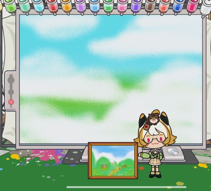 : 嗯对,设置人物时给自家崽崽设置了猫猫发型,看到猫猫主题的大树屋地图时开心坏了🤗😙