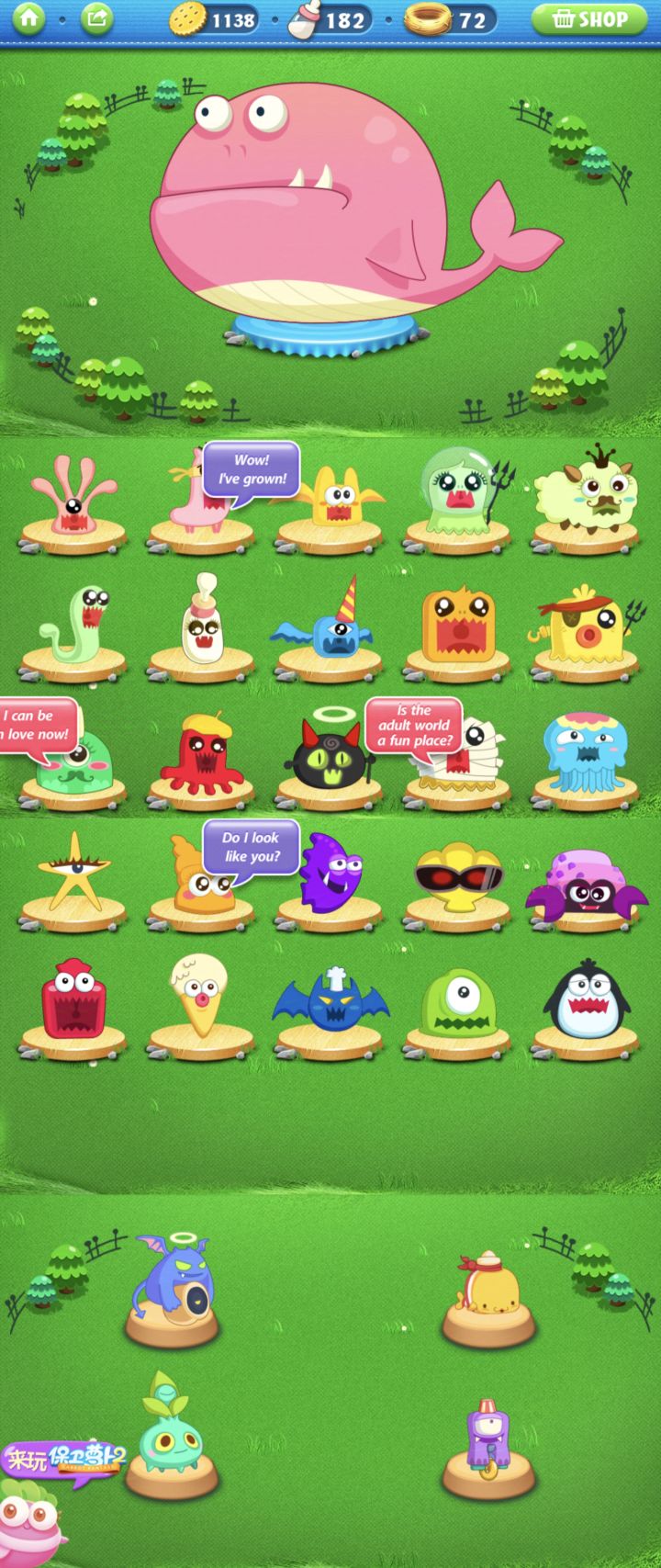 怪物长得都丑萌丑萌的,有种小孩涂鸦风,怪物的颜色也不花里胡哨很耐看,对比后面几版简直不要好看太多,真舍不得结束。