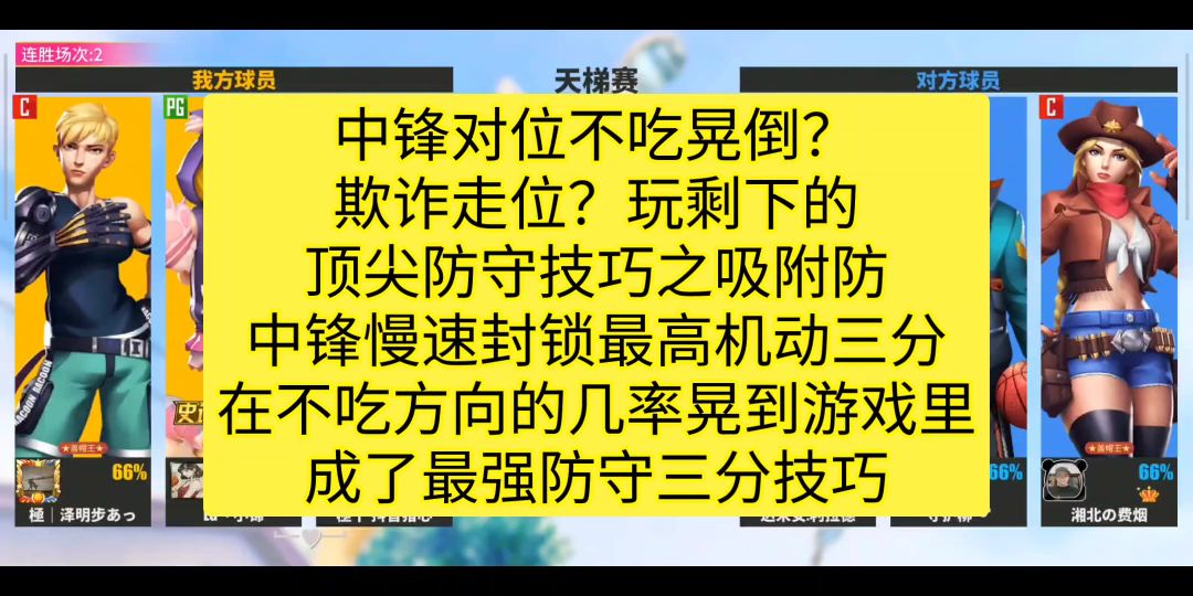 中锋对位不吃晃倒? 欺诈走位?玩剩下的 顶尖防守技巧之吸附防 中锋慢速封锁最高机动三分 在不吃方向的几率晃到游戏里 成了最强防守三分技巧 街球艺术2.0#全明星街球派对#街球艺术#马库斯#篮球防守教学