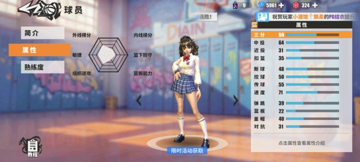 弄轻影——毕业于FCAA篮球手游名校康涅大附属高中,于本月参加APL联赛选秀大会,在首轮第11顺位被龙联俱乐部选中,在联赛中可打中锋/得分后卫/控球后卫是一个相对于均衡的选手,不过缺点就是多而不精,目前还只能在当饮水机守护神