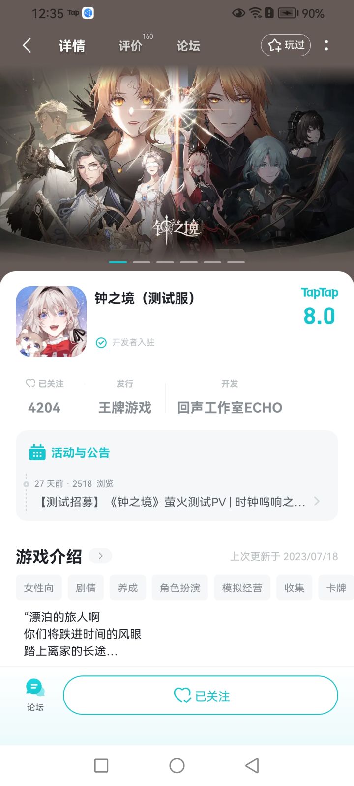 我不是一个喜欢看剧情的人,所以一般跳过(小声:剧情有点幼稚)画风我很喜欢,钟表和星座的元素真的真的太戳我了(不如说这个游戏整体美术是除了阴阳师之外能迷倒我的)肝度刚刚好,因为是测试所以送的资源很多,副本可以直接扫荡省时间,很适合佛系玩家,但是不知道正式上线了福利会怎么样,如果很少送体力那个花,养起来还是很慢的。至愿之境不错,相当于家园,很适合养老玩家(喝茶)抽卡情况:测试送的限时池子到现在